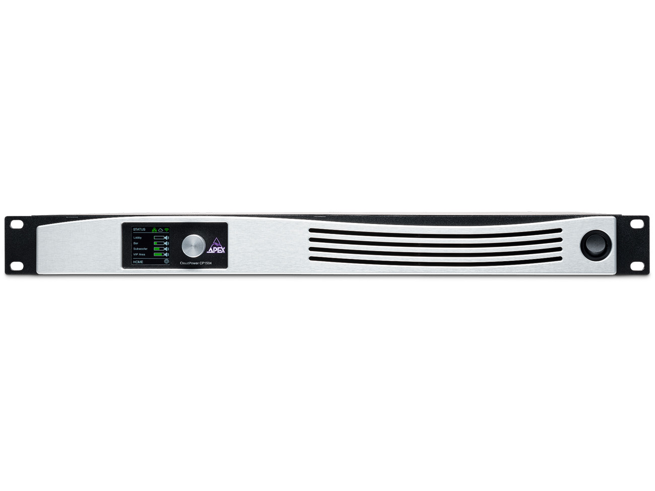 Apex CloudPower CP1504 professional amplifier features built-in DSP and and secure, remote control over the cloud.