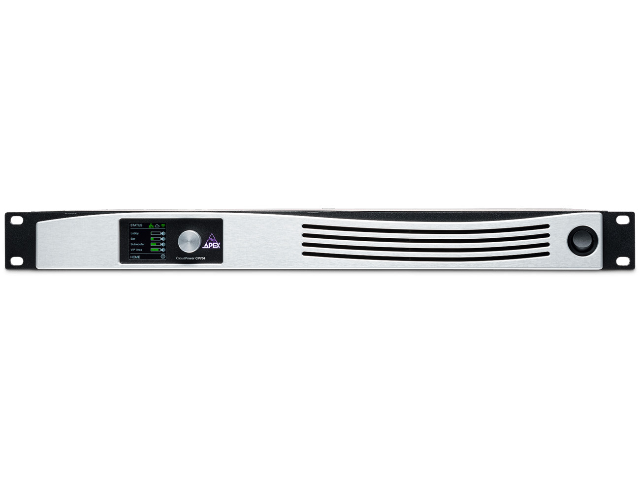Apex CloudPower CP704 professional amplifier features built-in DSP and and secure, remote control over the cloud.