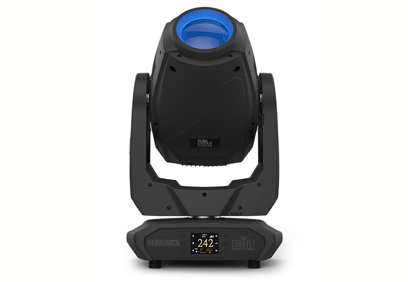 Maverick MK2 Spot is a stunningly bright moving yoke spot featuring a 440 W LED engine, precision engineered optics, CMY + CTO color mixing, two 6-position rotating slot and lock gobo wheels, a 7-position + white color wheel, variable frost, 3-facet prism and 14.7º – 40.5º zoom range. Control it as you see fit with DMX, sACN, Art-Net, or W-DMX.