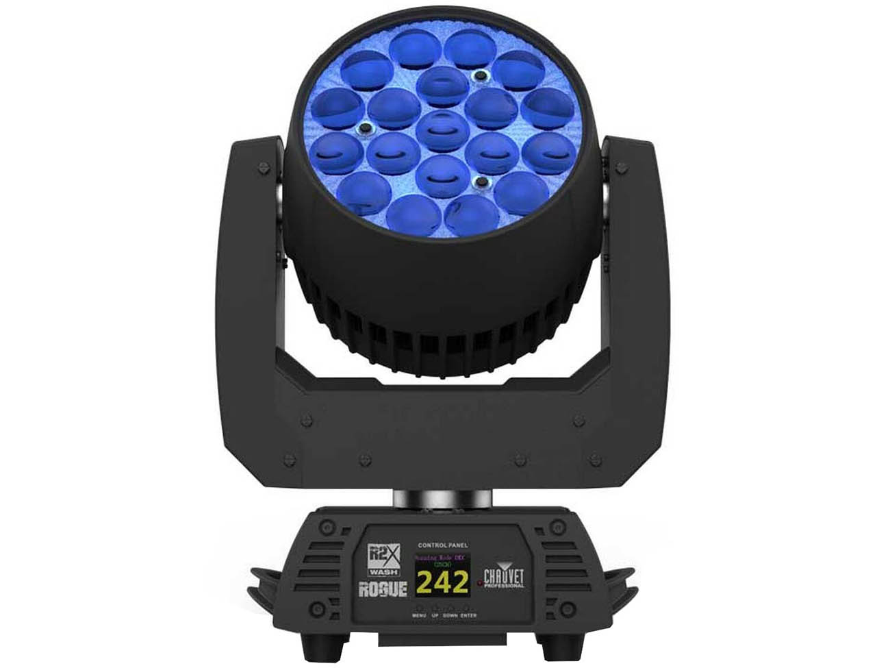 Rogue R2X Wash is a valuable addition to rental and production inventories. Durable and dependable, this moving wash workhorse produces a bright, powerful light and offers five zones of LED control to pixel map its 19 (25 W) RGBW quad-LEDs. A standout zoom range of 7.3° to 64.3° gives it the spread to cover even the largest areas. Smooth color mixing, simple and complex DMX channel profiles and powerCON in and out are just some of the other features that make this fixture a standout performer in any setting.