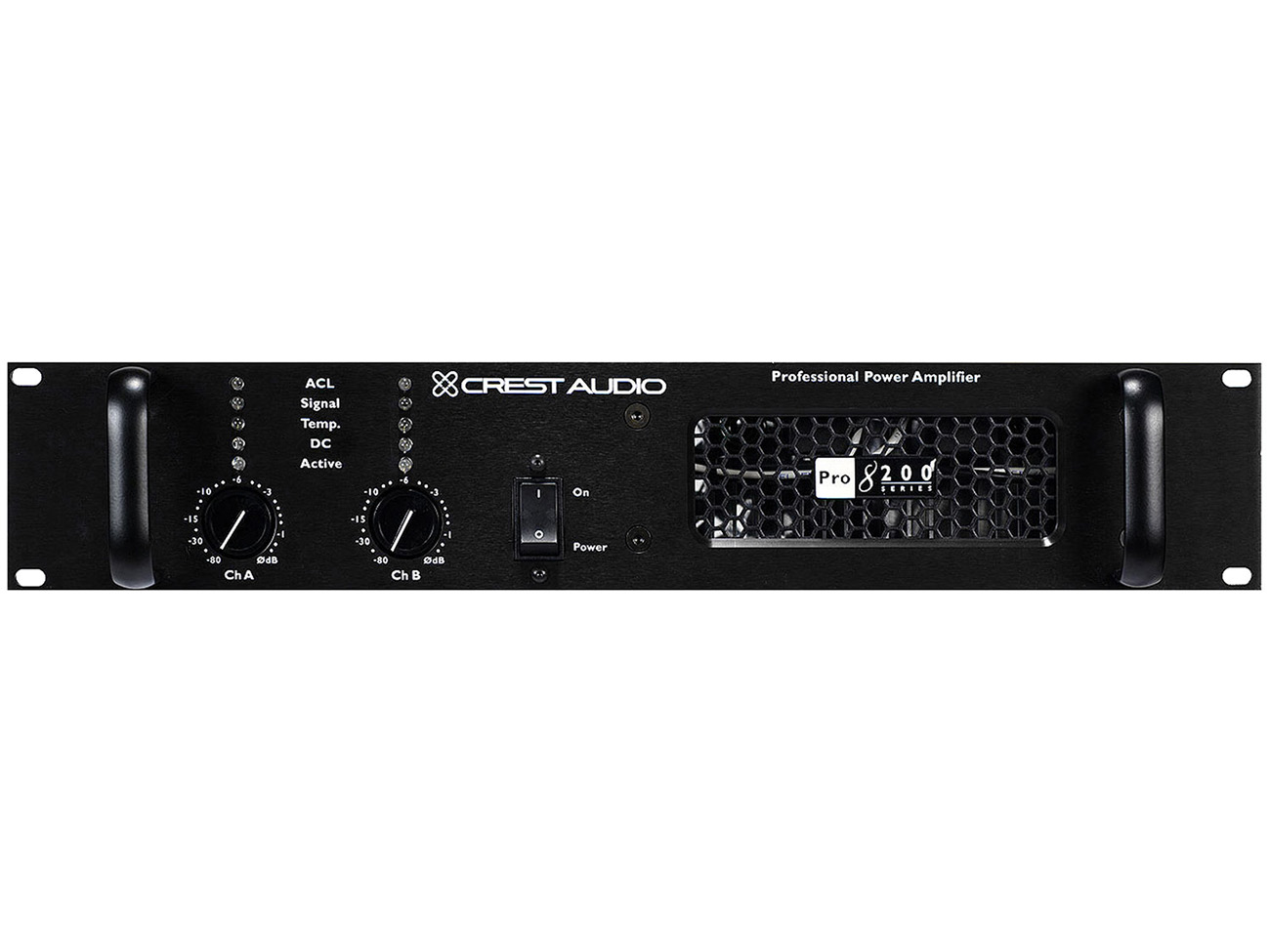 Designed with touring sound professionals in mind, the Crest Audio Pro 8200 power amplifier faithfully produces high power with low distortion in an extremely lightweight economical package. Rock stable in stereo or bridged mode operation the PRO 8200 is engineered to exceed expectations, when powering multiple or single loudspeaker enclosures down to a 2 Ohms load. The Pro 8200 power amplifier offers the protection that ensures safe & trouble free shows night after night.