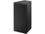The enclosure is constructed from marine plywood with an impact resistant black paint finish and is Ball Impact Resistant according to DIN 18032-3 for schools and sports halls. The front of the loudspeaker cabinet is protected by a rigid metal grill backed by an acoustically transparent foam. The top and bottom panels incorporate a pair of M10 threaded inserts and the rear panel incorporates two M8 threaded inserts, two NL4 connectors as well as a two pole screw terminal block.