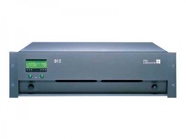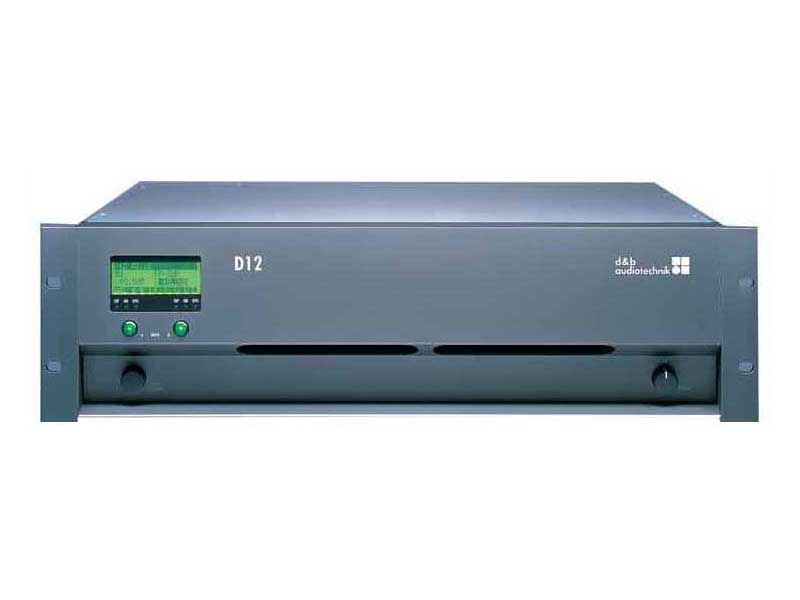 The d&b D12 amplifier is a dual channel amplifier incorporating digital signal processors (DSP) to provide loudspeaker specific configurations and functions.