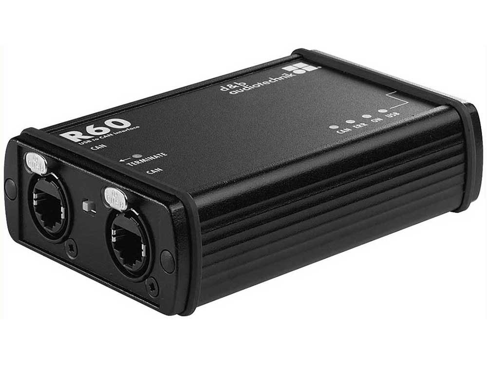 The R60 USB to CAN interface is designed to connect the d&b Remote network (CAN-Bus) to a PC via USB (Universal Serial Bus) and must only be used within a d&b sound reinforcement system.