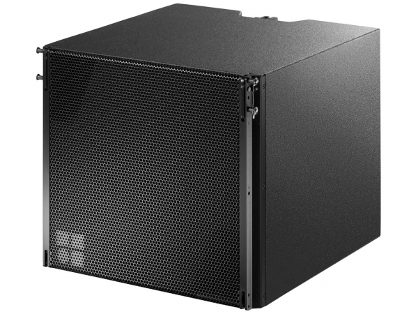 The installation specific Vi-SUB is an actively driven high performance cardioid subwoofer powered by a single amplifier channel. The Vi-SUB features integrated rigging equipment. It shares the same acoustical and visual design as the Vi-GSUB, which is intended for ground stacked applications only. It houses two long excursion neodymium drivers, an 18" driver in a bass-reflex design facing to the front and a 12” driver in a two chamber bandpass design radiating to the rear.