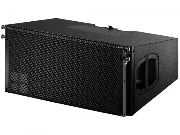 The V12 is a 3-way passive design housing 2 x 10" LF drivers, one hornloaded 8" MF driver and two 1.4" exit HF compression drivers with 2.5" voicecoils mounted to a dedicated waveshaping device. The symmetrical dipolar arrangement of the neodymium LF drivers around the centrally mounted coaxial MF and HF components allows a smooth overlap of the adjacent frequency bands in the crossover design. This results in an exceptional 120° horizontal constant directivity dispersion control nominally being maintained down to 250 Hz.