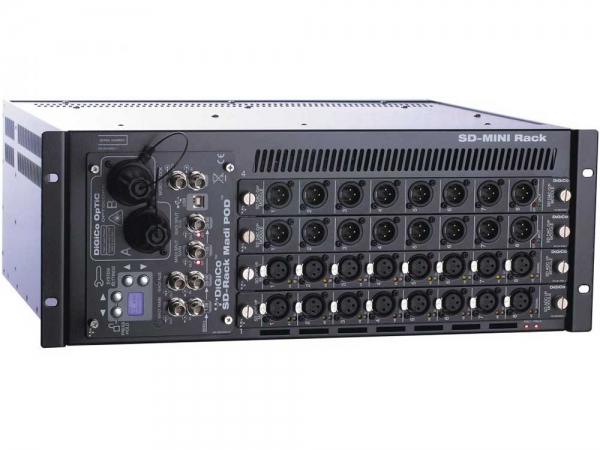 Crammed with I/O but occupying just 4U, the SD-MiNi Rack joins the SD and SD-Nano racks as part of DiGiCo’s comprehensive family of high sample rate, remote rack solutions to meet any and every requirement.The SD-MiNi accepts both analogue and digital input and output cards including AES/EBU, Dante, AES-42, ADAT, HD-SDI and Aviom. For purely digital applications, each card slot provides 8 channels of audio in and out, allowing the SD-MiNi to run up to 32 inputs and 32 outputs. In an all analogue scenarios, users can benefit from a maximum of 32 ins or outs, or any combination thereof in banks of eight (for example, eight in and 24 out).