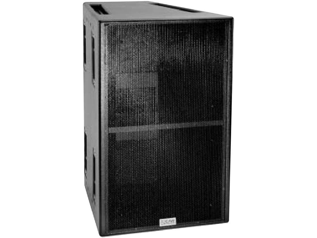 A dedicated high ?Q? Virtual Array low frequency module. Includes 2x horn-loaded 15" woofers in a trapezoidal enclosure.
