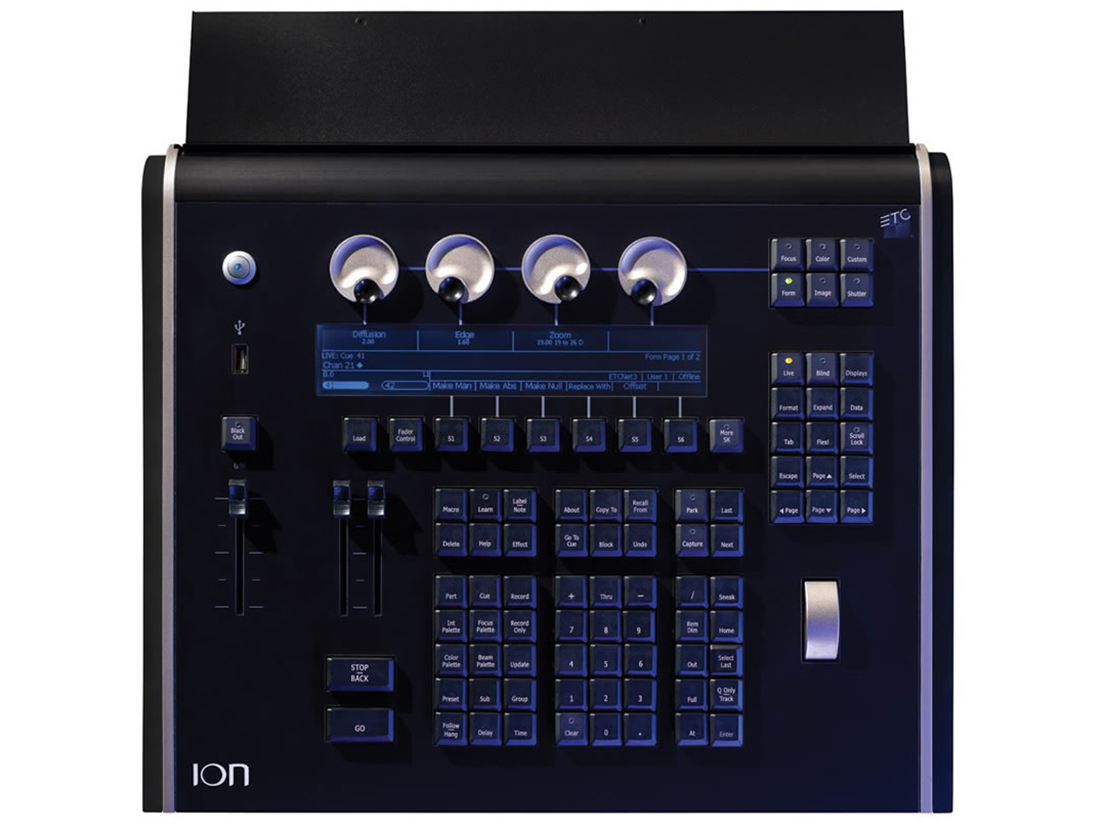 Highly intuitive and simple to use, Ion will satisfy the needs of beginners and pros alike. But you don`t need a PhD in Ion to use it! Start with the everyday (channel 5 at full) and let the full potential of Ion - like the powerful effects package, marking and timing functions - unfold with your experience. And it`s an easy step from Ion to Gio @5, Gio or Eos Ti, so the knowledge gained will work for you professionally for years to come. Ion sports a generous programming keypad, four dedicated encoders for non-intensity parameter control, a grand master and blackout button, as well as a master split fader. For more hands-on control, Ion hosts up to six USB fader wings - the 2x10 and 2x20 - for a total of 300 additional mapped submasters or 200 cue lists with paging controls. The desk can support one or two external high-resolution Windows? 7-compatible monitors that can also be touch- or multi-touch screens.