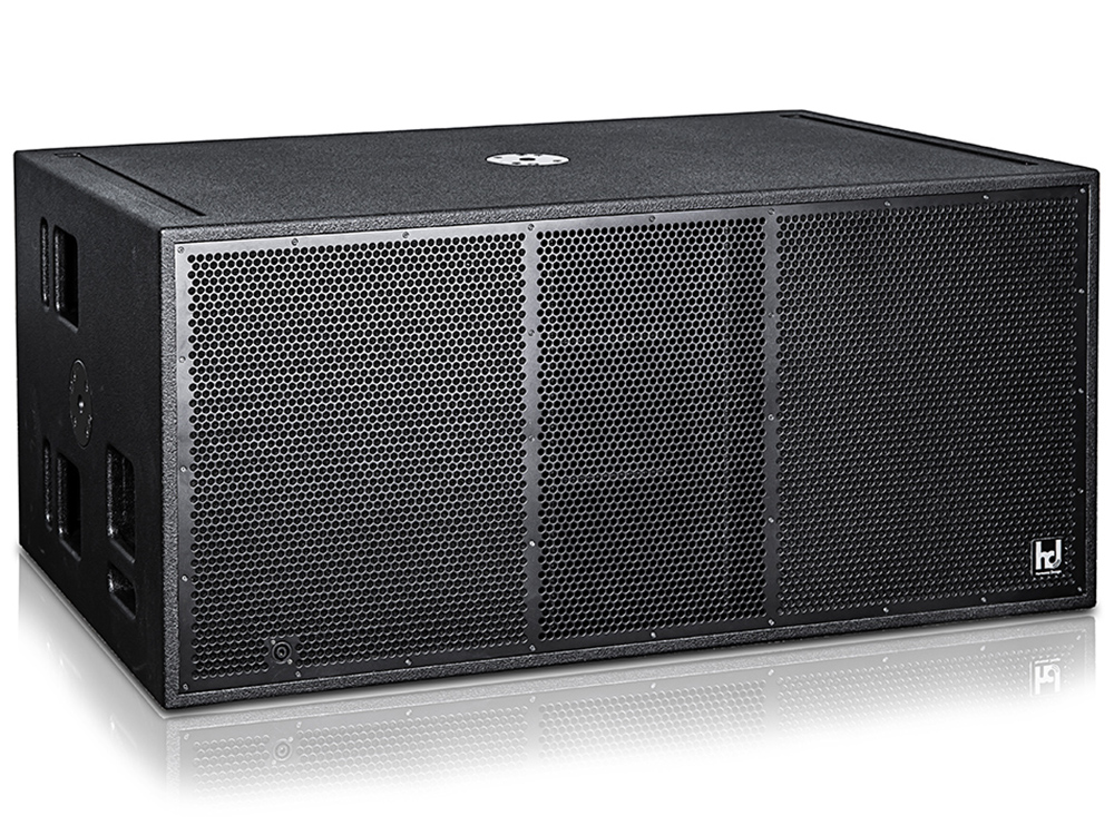 The hd Infra218 is a high-performance subwoofer for reproducing frequencies below 28 Hz. Compact dimensions and exceptional power reserves combined with minimal distortion make the hd Infra218 a modern and flexible tool for touring and installation applications requiring extreme low-frequency sound pressure and maximum control over dispersion. The optimally tuned, horn-shaped multiplex enclosure with bass reflex tuning accommodates two special 18″N high-performance chassis with a linear stroke of 30 mm and a load capacity of 14.4 kW. A large, air flow-optimized center reflex port allows excellent air excitation with minimal turbulence and distortion. Thanks to its long throw range, high efficiency and passive directivity, the hd Infra218 can be optimally integrated into LineArray applications. Two M20 threads allow horizontal and vertical operation with distance rods. A Speakon turning socket in the protective grid allows cardioid configurations without an interchangeable cable.