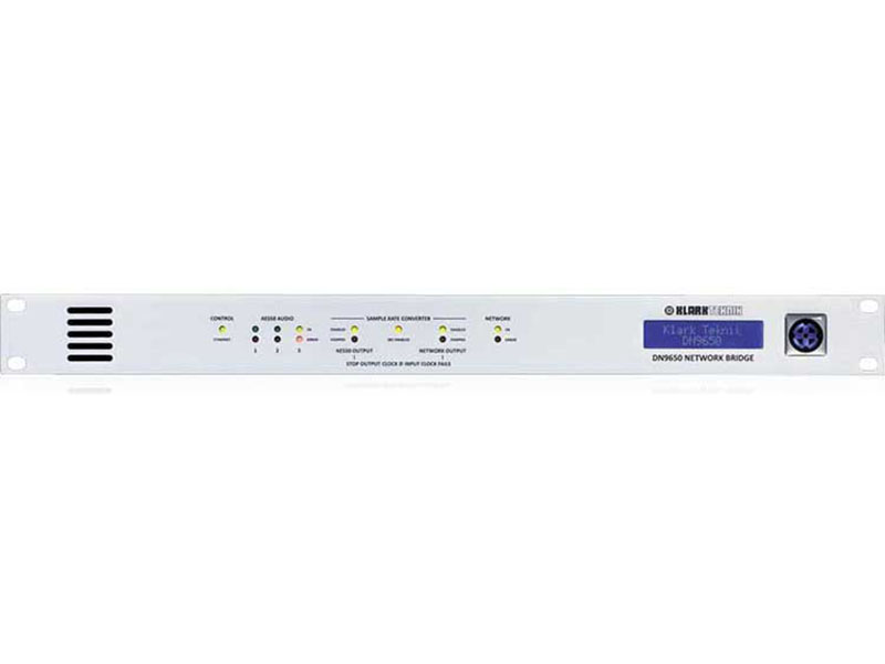 DN9650 provides a multichannel interface between AES50 networks and third party digital audio networks and point-to-point interfaces. The AES50 and third party interfaces operate in separate clock domains and are connected by a bidirectional asynchronous sample rate converter (ASRC). This unique KLARK TEKNIK technology allows the interfacing of up to 64 bidirectional channels between the two independently clocked domains, which can also operate at different sample rates. Currently supporting MADI and Audinate Dante via the KLARK TEKNIK KT-MADI And KT-DANTE64 network modules, DN9650 is future-proofed in the evolving world of digital audio networking technology by being able to support new and emerging protocols via its industry-standard expansion slot, which is compatible with the Cirrus CM-1 format.