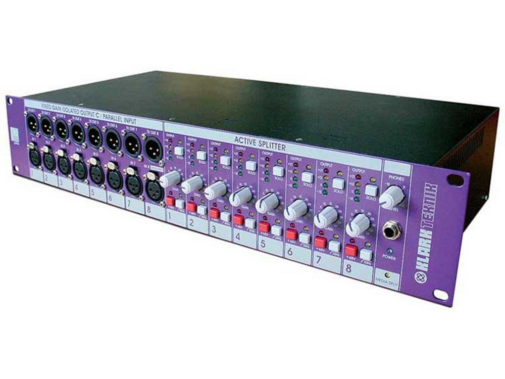 - Media split switch for routing channel 8 to all 16 electronically balanced outputs.