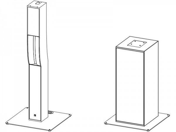 Syva Base is a base plate for Syva, Syva Low and Syva Sub. It must be secured to the bottom of the enclosure and features four runners for stability. These can be removed to secure the base plate to the floor.