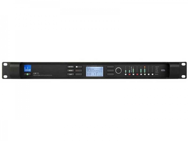 The LM 26 provides a two input/six output analog configuration that is ideally suited for multi-way loudspeaker crossover, delay and EQ functions. The LM 26 also provides 4 - 8 AES3 digital I/O and 4 - 8 Dante networked I/O, all with comprehensive signal routing to provide Dante break-in / break-out and failover functionality. Two LM 26 units may be stacked and linked to function as a 4 - 12 processor.