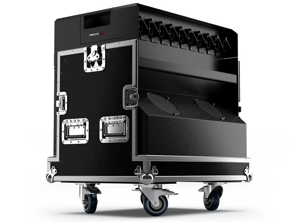The MAGIC FX SMOKEBUBBLE BLASTER blows smoke-filled bubbles which create a magical atmosphere. This large bubble blaster, with built-in fog effect, blows 6.000 bubbles per minute! Amaze the crowd and create magical moments!
