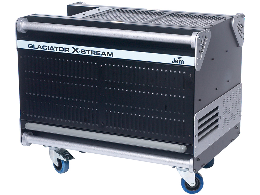 The JEM Glaciator X-Stream creates a total ground fog effect from a self-contained unit (no C02 or dry ice required). It requires only a power source and the simple but effective JEM heavy fog fluids available in three densities for differing low-fog effects.