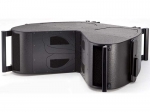 The rectangular cabinet is built in high quality 15mm. Baltic plywood, strengthened by the complex internal structure and suitably positioned internal bracing to eliminate any resonance of the cabinet`s sides. The black outer finish is in high quality scratch-resistant paint. The cabinet has 6 fast flying points, that makes vertical or horizontal hanging of numerous units simultaneously extremely easy and reliable, by using the appropriate optional accessories. The front of the enclosure has recessed sockets for fitting an optional trolley, for handling and protecting the front during transport even on uneven surfaces. Ten recessed integrated handles in the side panels of the cabinet are used for a positive grip during handling.