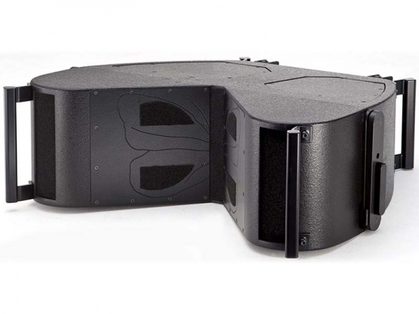 The C.D.H. 483 Hi-Pack is the Butterfly system`s element for mid-low, mid and high frequency reproduction. Weighing just 34 kg. the cabinet has an unmistakable shape which brings to mind the butterfly from which it takes its name, thanks to the triangular opening in the upper and lower "sides". This original design solution favours the optimum coupling of array elements up to the highest frequencies, keeping the distance between the sources as short as possible and at the same time providing them with a continuous loading `baffle`.