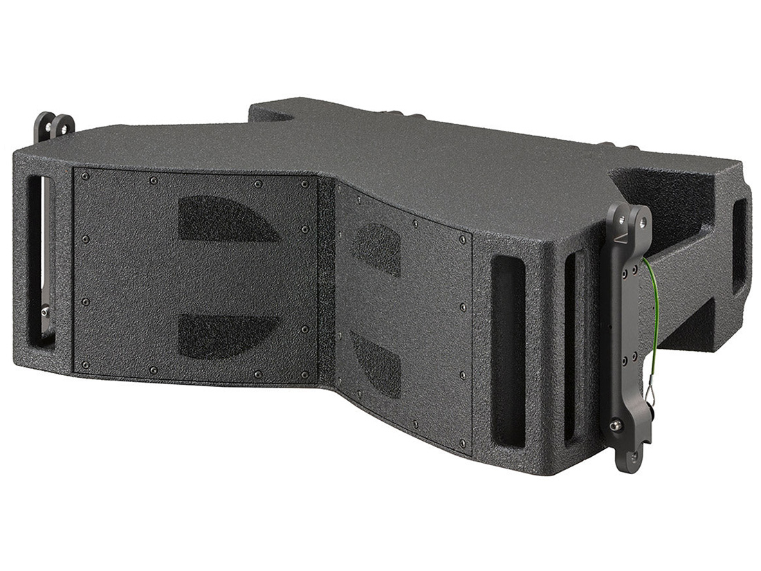 Four high-efficiency 8" mid woofers: two band-pass loaded (110-400Hz) and two reflex high-pass (110-1250Hz) loaded by the sides of a waveguide with a 90° dispersion angle are connected in parallel without any type of passive crossover, so can both be powered using one amplifier.