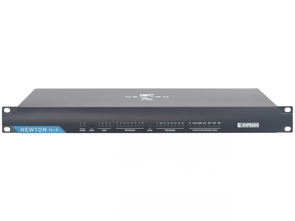 Internal processing is all at 96 kHz, with an internal data depth up to 64 bits. In each processing section users have precise control over Level, Delay, Polarity and Raised Cosine Filters (implemented within WFIR Equalisers), all functions that are required to manage and optimize a loudspeaker system. While Newton 16 is an all-digital device, Newton 16+4 and Newton 16+8 add the useful capability of local analog inputs and outputs.
