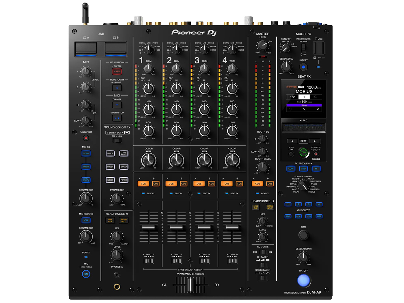 The 4-channel DJM-A9 raises the bar for club standard mixers – boasting huge upgrades compared to its predecessor, the DJM-900NXS2 – with stunningly clear sound quality, enhanced playability and connectivity, and a host of new features to help you take your performances to the next level. The DJM-A9 has also been improved as a musical instrument for more emotional and dynamic performances, while retaining the functions and layout that have become club standards.