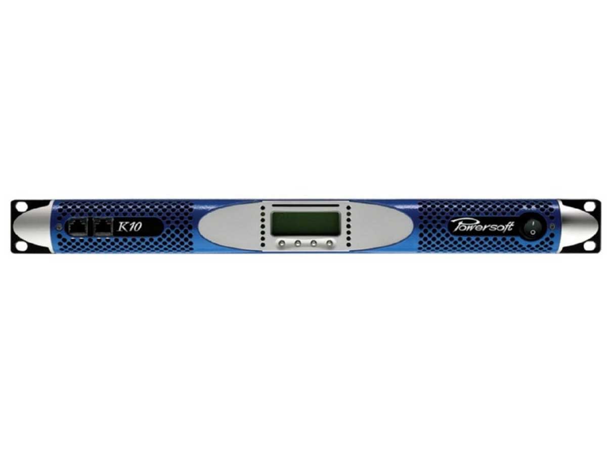 Fully digitally controlled and with a serial PC communication port as standard, the K10 is also available with KDSP board and KAESOP Ethernet/AES3 interface: the K10 DSP+AESOP amounts to a fully integrated, highly sophisticated yet easy to use power source including state-of-the-art sound shaping and system management capabilities, remotely controllable via Powersoft`s Armon'a Pro Audio Suite (Interface available for MediaMatrix, Crestron, AMX, Q-SYS control and monitoring systems).