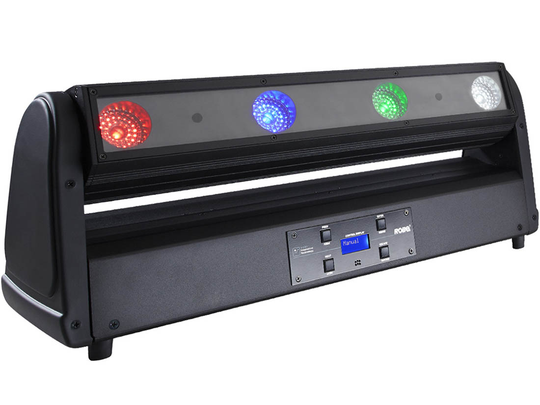 This time, the very wide zoom and fast tilt movement come on a 500 mm long strip. Four individually controlled 15W RGBW multichip LEDs in compact size and lightweight aluminum housing with 270 degree motorized tilt can be very precisely positioned, indexed or programmed to produce rapid sweeping movements of 8° beam, smoothened into wide 63° wash coverage or utilize [sun strip] tungsten effects.