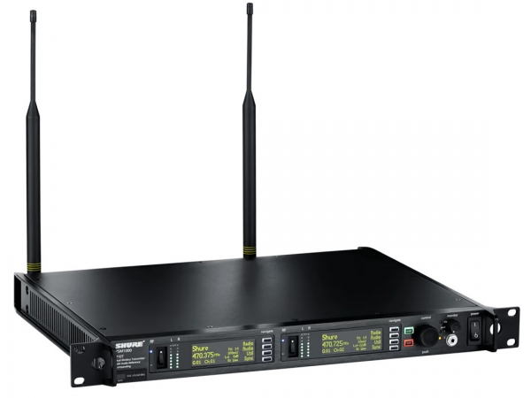 - Full-rack, dual channel wireless transmitter housed in a touring-grade, all-metal chassis