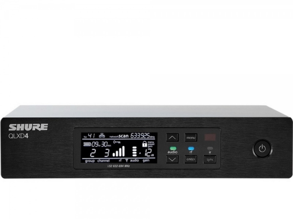 With transparent 24-bit digital audio quality and incredibly efficient RF spectrum usage, the QLXD4 Digital Wireless Receiver combines professional features with streamlined setup and operation.