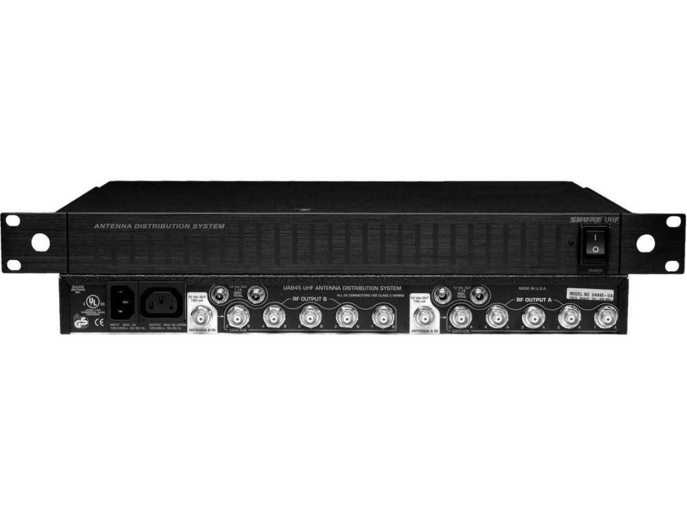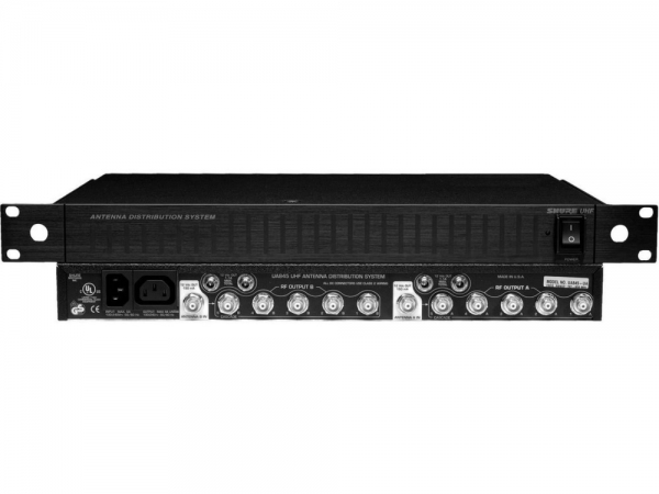 Antenna distribution system expands a wireless microphone system by splitting 1 pair of antennas and amplifies RF signals.