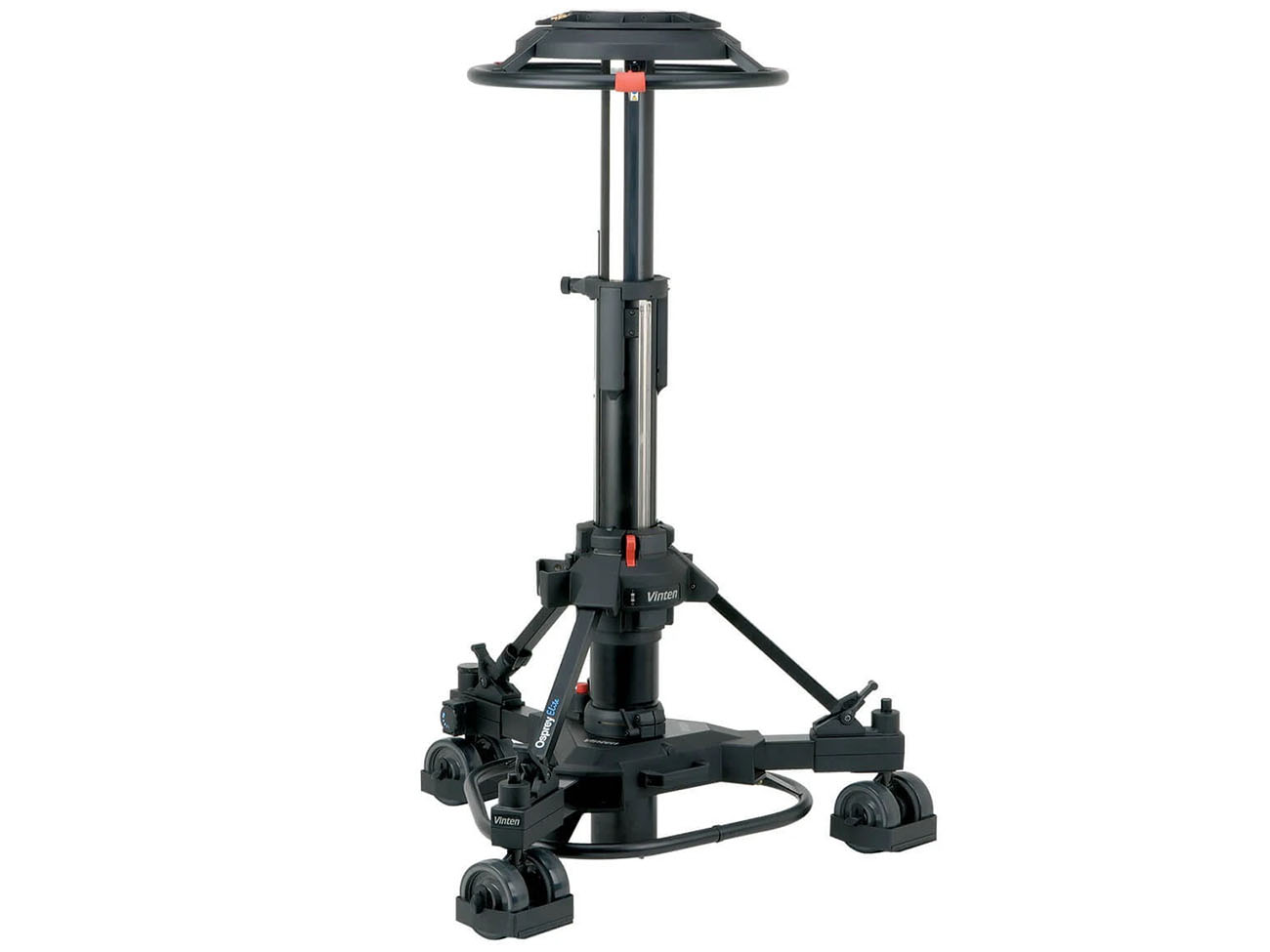 The widest variety of shots is possible with the adjustable elevation and height range options in the Osprey series. Combined with prompter mounting hardware and Vinten fluid heads, Osprey pedestals match the eyeline of on-screen presenters from the lowest height percentile to the highest, and from seated to standing – even at close range.Smooth precision movements and accurate direction changes with payloads up to 80 kg / 176 lb allows camera operators freedom to frame the shot and put the viewer in the action.