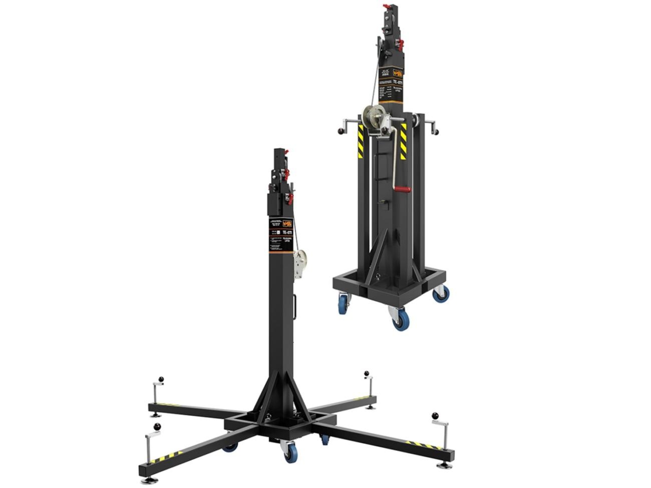 The TE-071 features high-strength stabilizing legs with leveling spindles, and its compact footprint makes it suitable for venues with limited space. It's ideal for DJs, AV technicians, and small event setups needing reliable and portable lifting solutions.